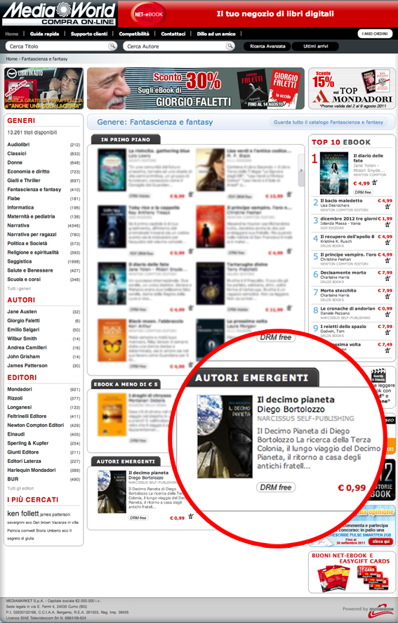 L’e-book “Il Decimo Pianeta” nelle home page dei migliori store on line e al 5° posto nella classifica vendite di luglio di Ultima Books!